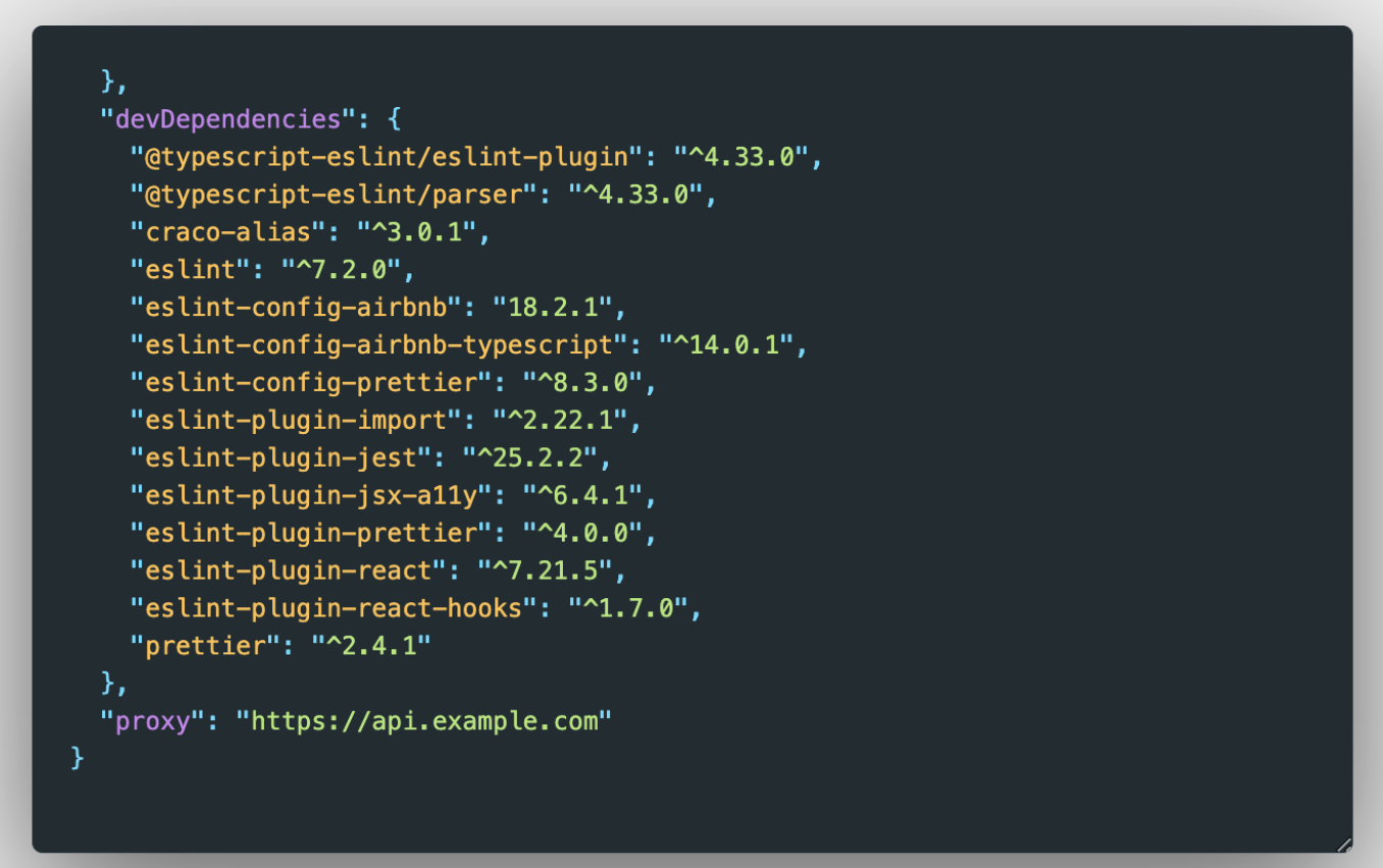 간편하게도 package.json에 옵션을 추가해주면 프록시를 설정할 수 있다.