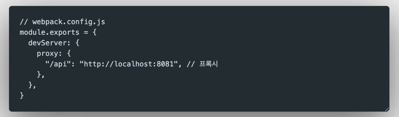이런 상황에서 내 프론트엔드 프로젝트에 웹팩이 적용되어 있다면, 웹팩의 proxy 옵션을 사용해보자.