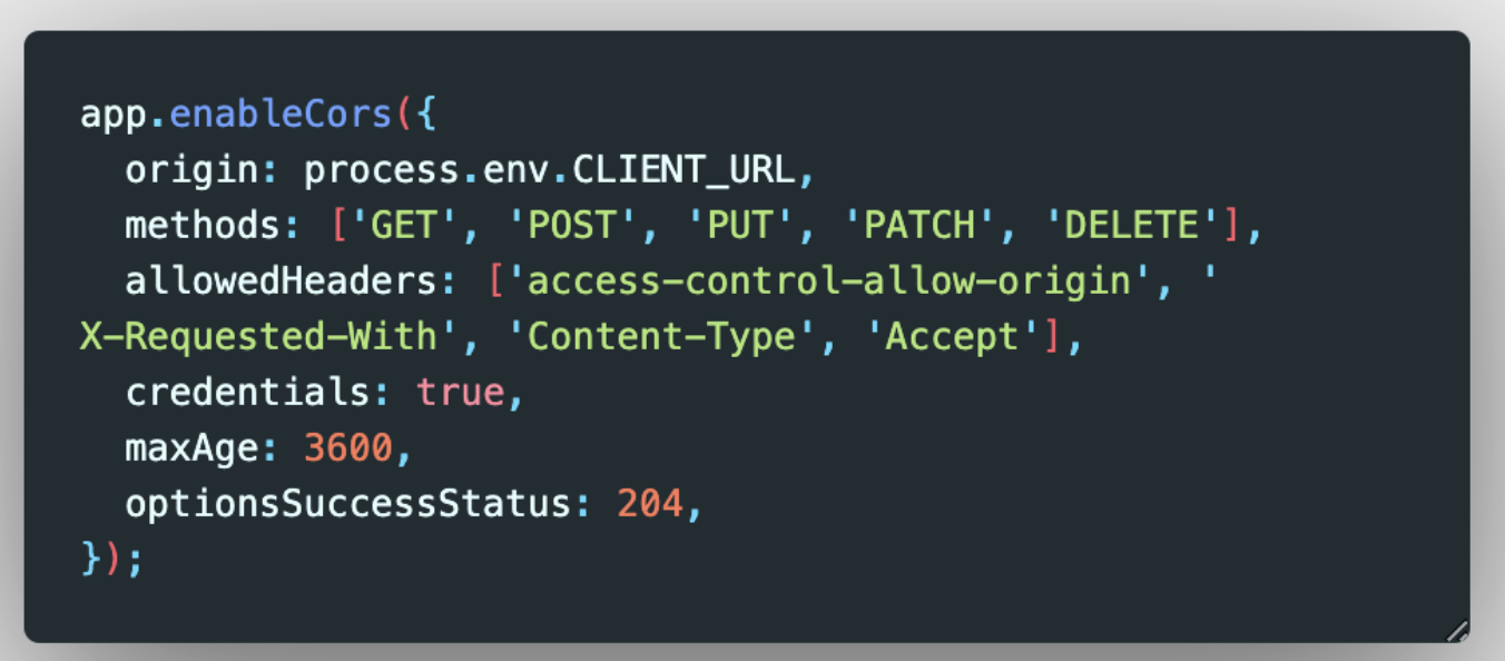 물론 우리는 이미 위에서 배포 환경에서의 cors 옵션들에 대해 설정을 마쳐놨다.