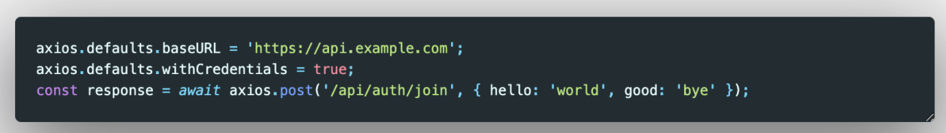 axios는 기본값 설정이 가능한데, 모든 요청에 대해 기본값으로 사용하는 옵션이다.