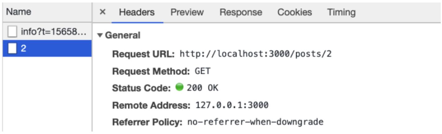 크롬 개발자도구의 네트워크 탭에 가면, http://localhost:3000으로 요청한 모습을 볼 수 있다.