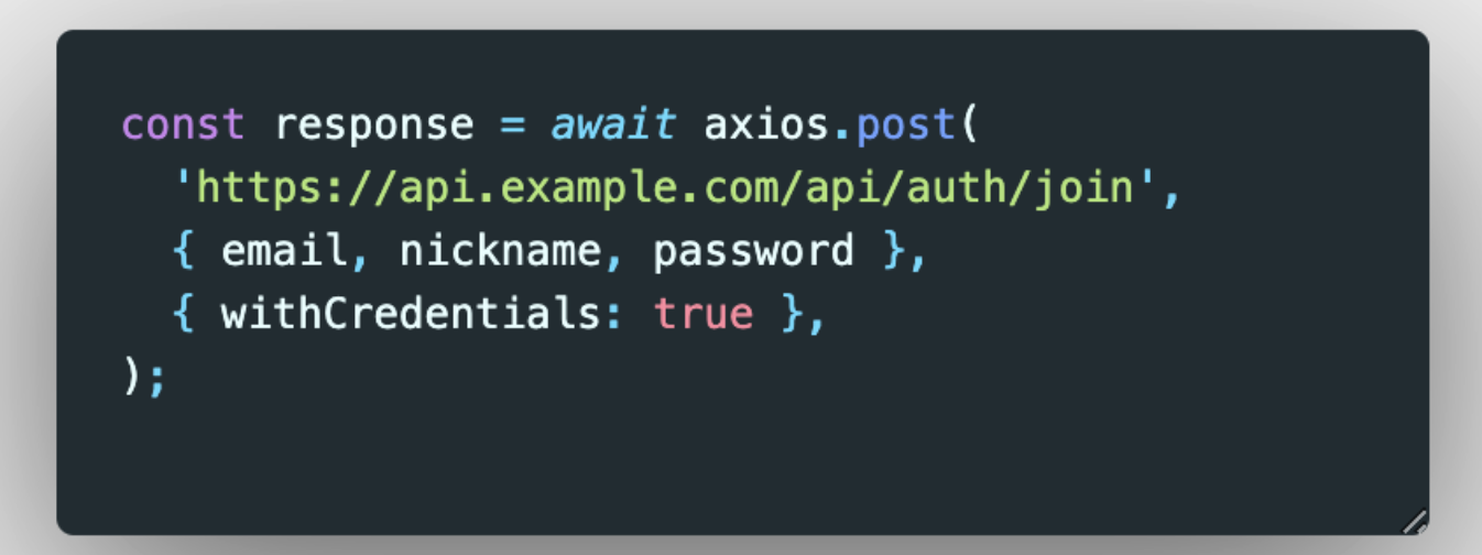 - localhost:3000 -> localhost:3000 으로의 요청만이 자격증명을 포함하겠다는 것이다.