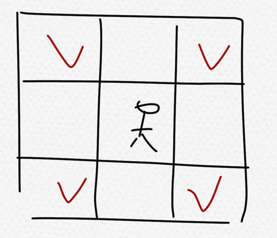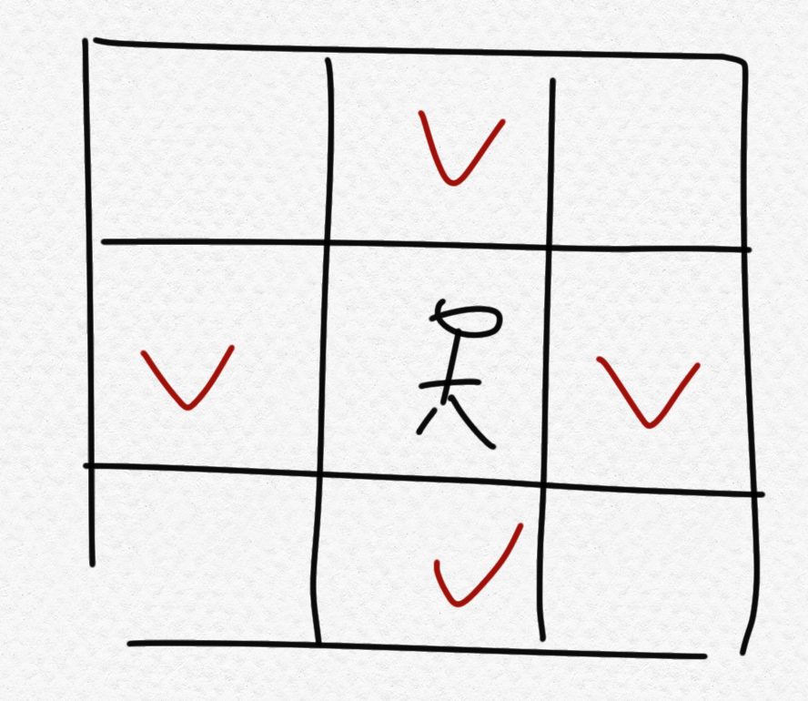 1. 1만큼의 맨하튼 거리에 응시자가 있는가?