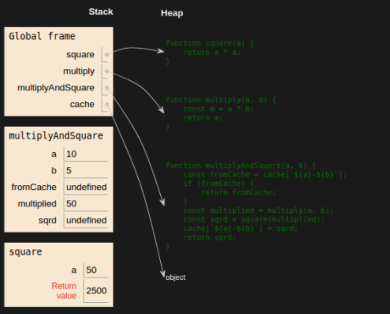 - 함수가 종료(함수 프레임이 반환)될 때는 스택에서 제거된다.