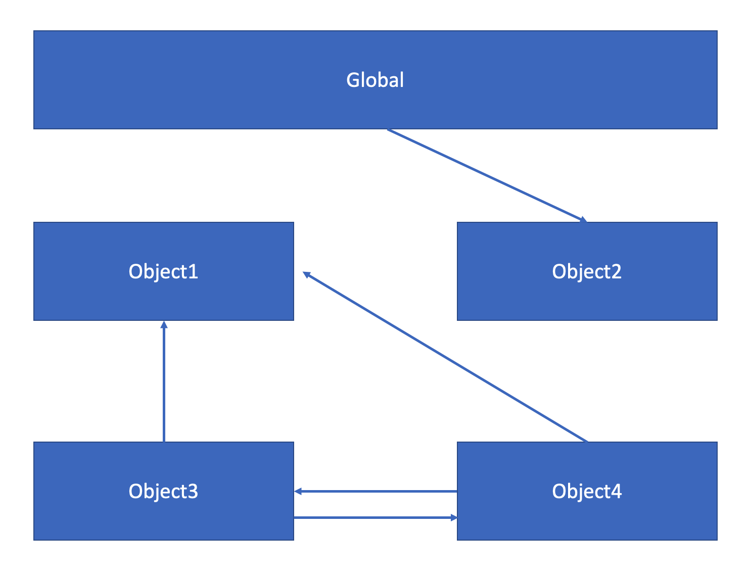Object 1, 3, 4는 서로 도달할 수 있지만 문제는 루트에서 이 객체들에 도달할 수가 없다.