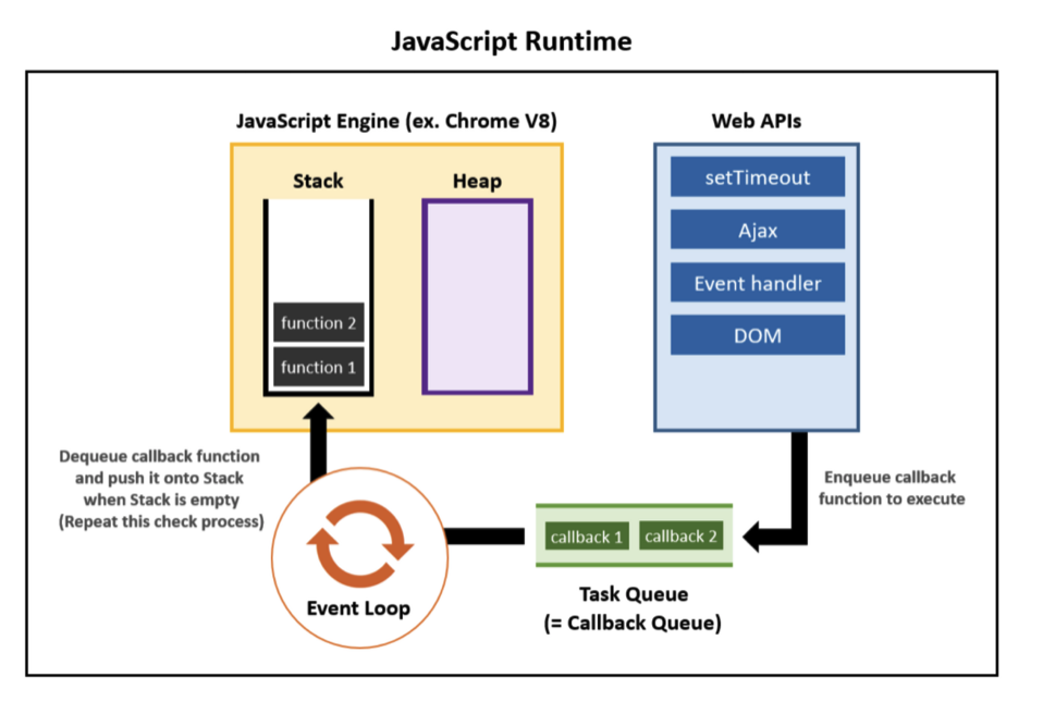 이벤트 루프와 태스크 큐를 통한 비동기의 이해를 위해 잠깐 자바스크립트 엔진이 등장했었다.