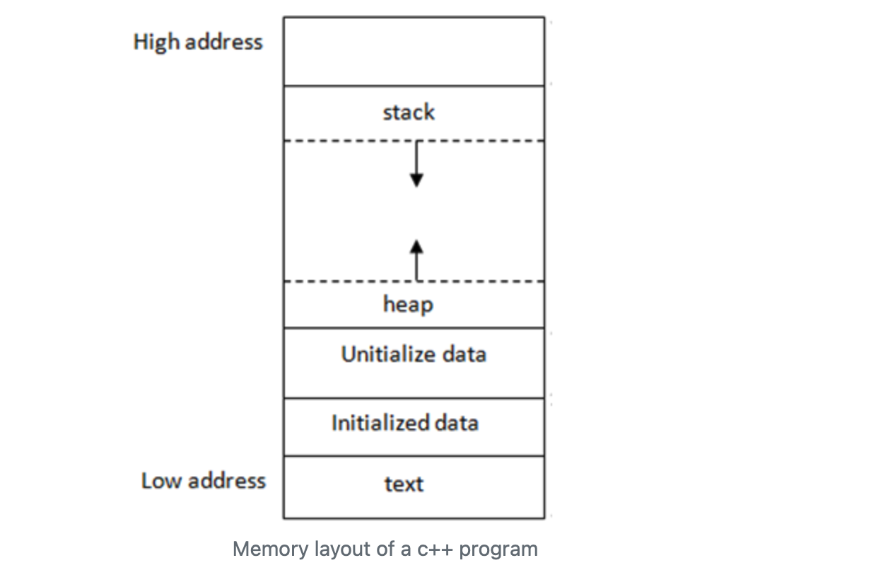기본적으로 스택과 힙은 같은 공간을 공유하며, 둘 사이에 미사용 메모리 공간이 존재한다.
