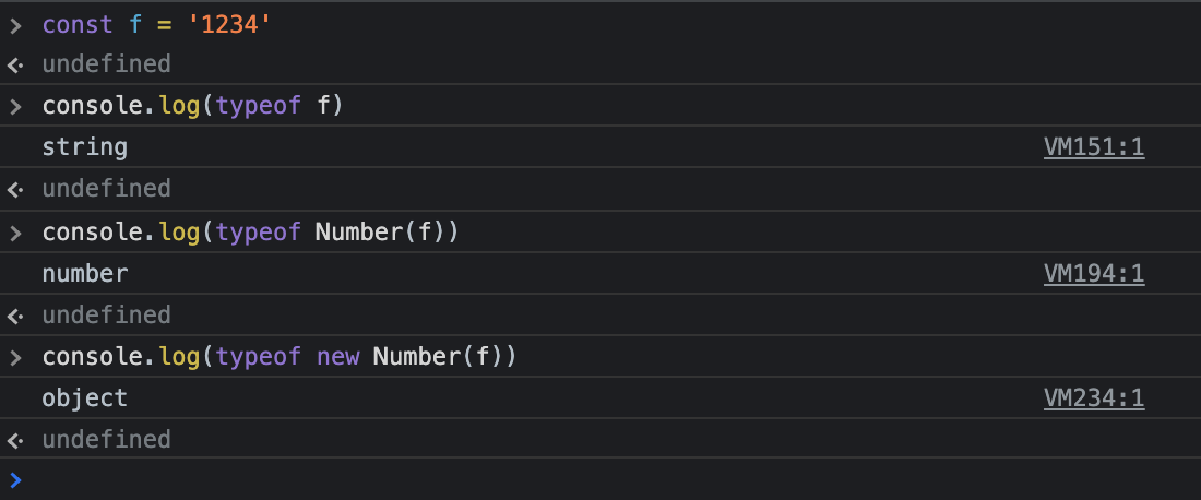 문자열로 선언한 숫자값 f를 new 키워드로 숫자화한다면, 타입이 객체가 되어버린다.
