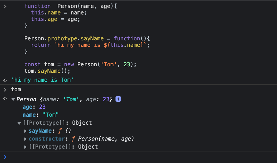 const tom = new Person('Tom', 23);