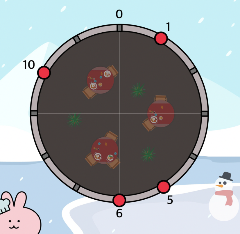 우선 다음과 같은 원형 레스토랑의 둘레는 n이다.