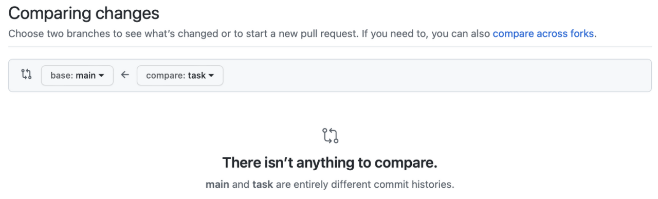 task 브랜치와 origin/main 브랜치가 연결점이 없다보니, 위에서 보인 에러를 보여주는 것이다.