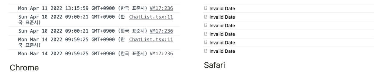 크롬과 사파리 둘 다 new Date 인자로 활용할 수 있었다.
