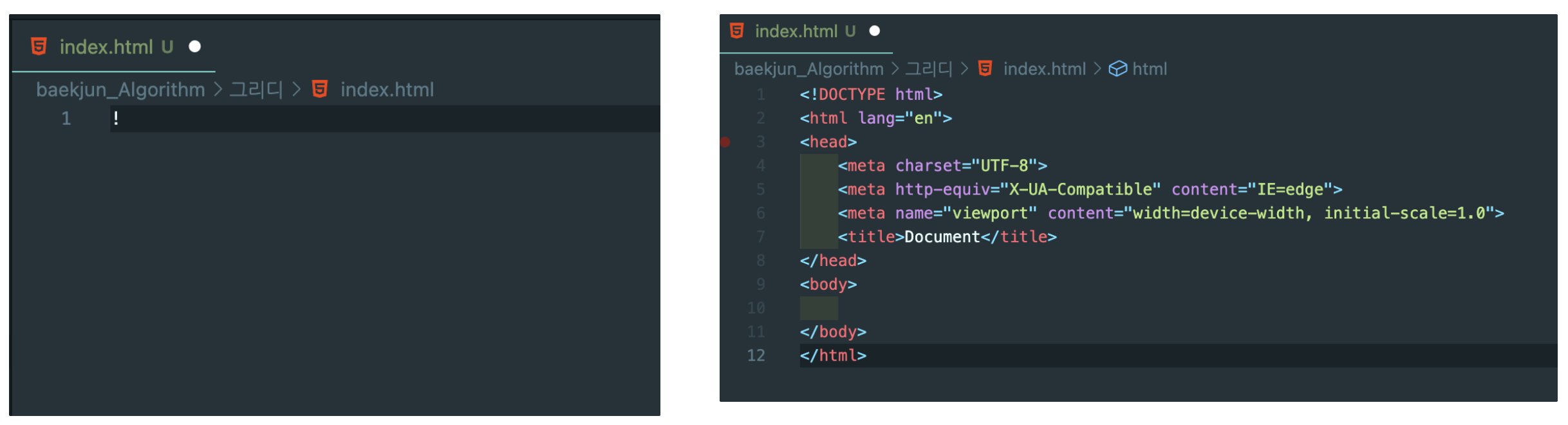 여러분은 아마 VSCode에서 index.html 파일을 만들고 [! + enter]를 통해 html 기본 골격을 가져와본 경험이 있을 것이다.