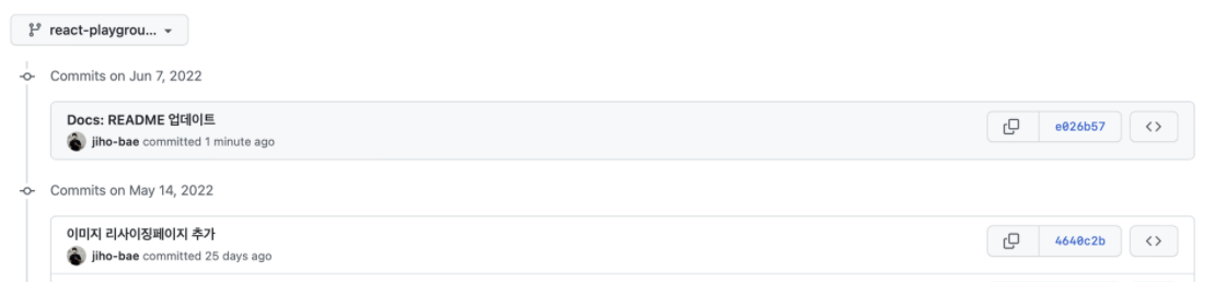 프로젝트 저장소에서 커밋 로그를 보면,