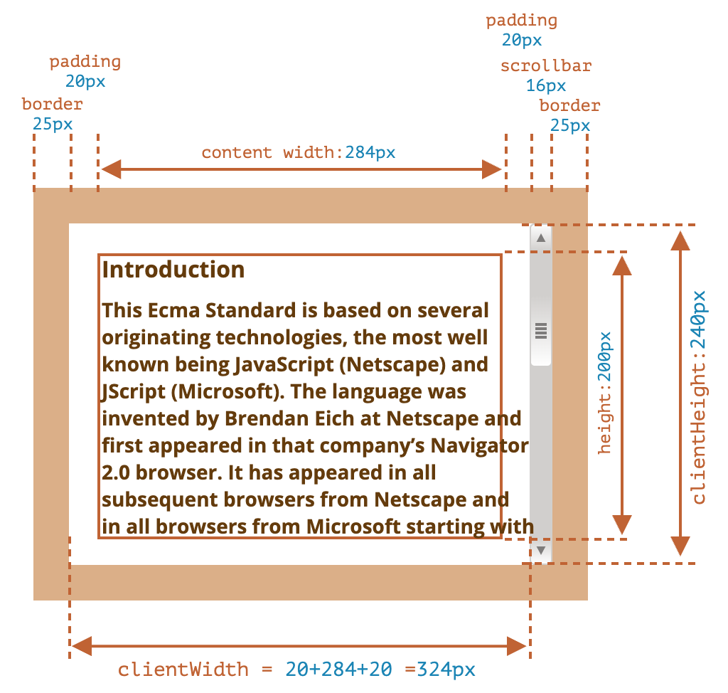 clientHeight = padding-top + padding-bottom + content-box width이다.