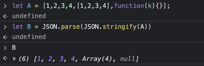 다음과 같이 배열 내에 함수를 선언했다면, 변환 과정에서 함수가 사라진다.