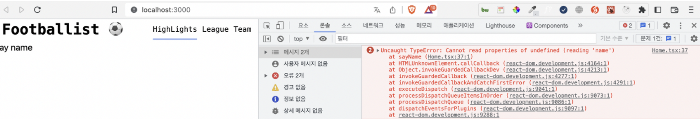 문제는 없어 보였으나, Cannot read properties of undefined (reading 'name') 라는 에러를 뿜는다.
