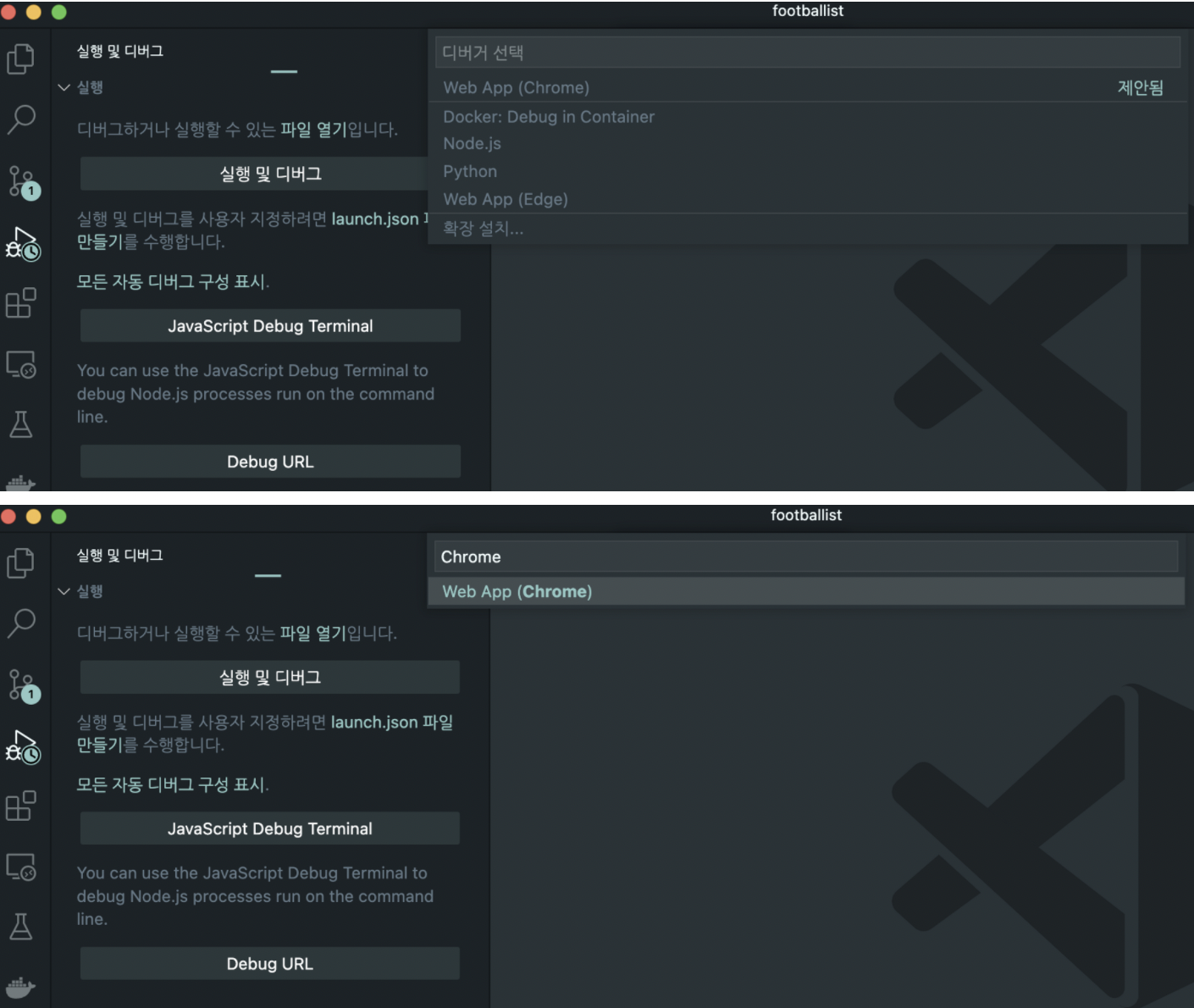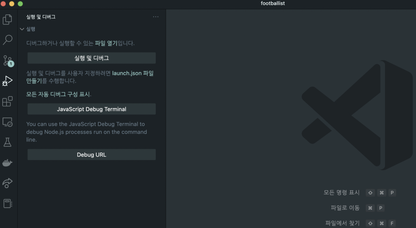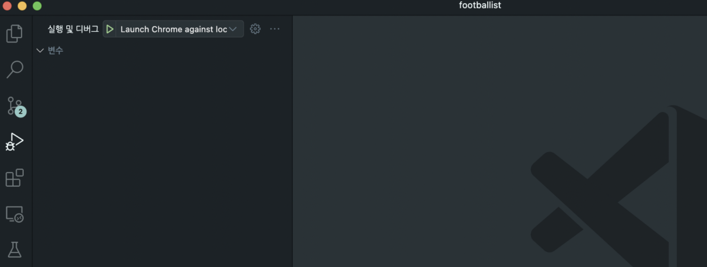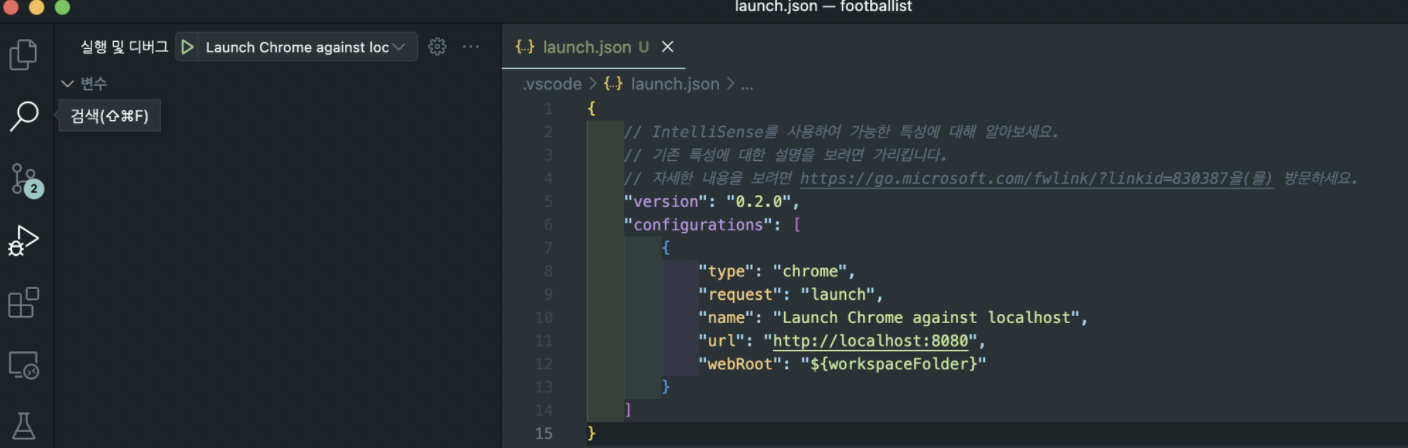 - 좌측 메뉴 4번째 탭 실행 및 디버그
