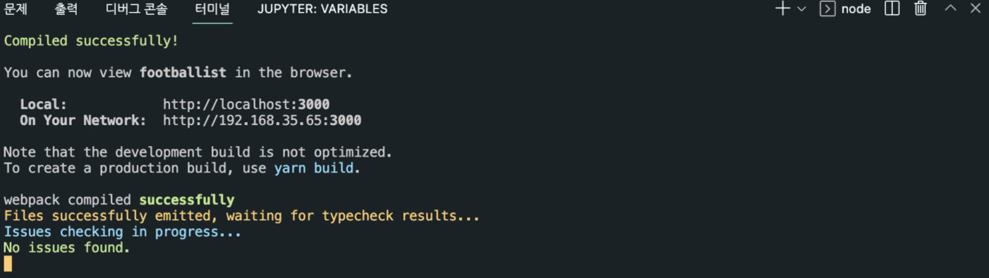 터미널에서 우리 리액트 프로젝트의 포트(3000번)을 기억해둔다.