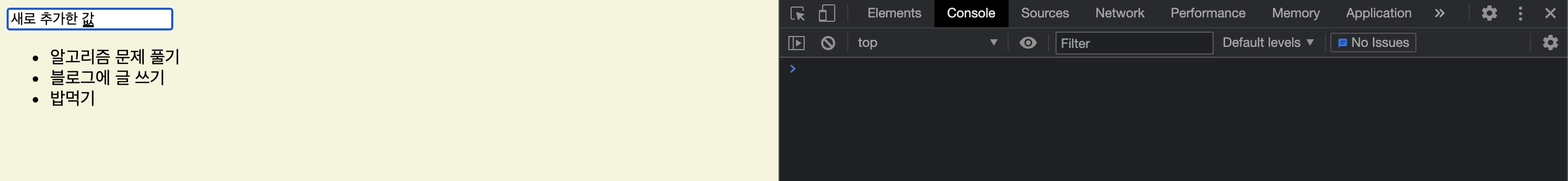 "toDoList" : "입력한 할 일" 로만 나타난다.
