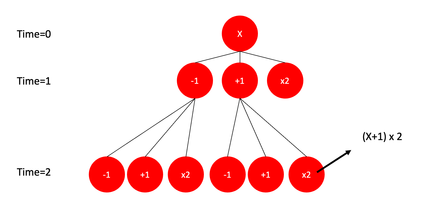 for (next of [cur - 1, cur + 1, cur * 2]) {