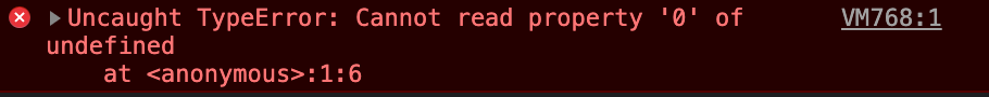 undefined의, 0 이라는 속성을 읽을 수가 없다고 한다.