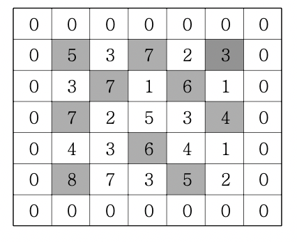 격자의 가장자리는 0으로 초기화 되었다고 가정한다.
